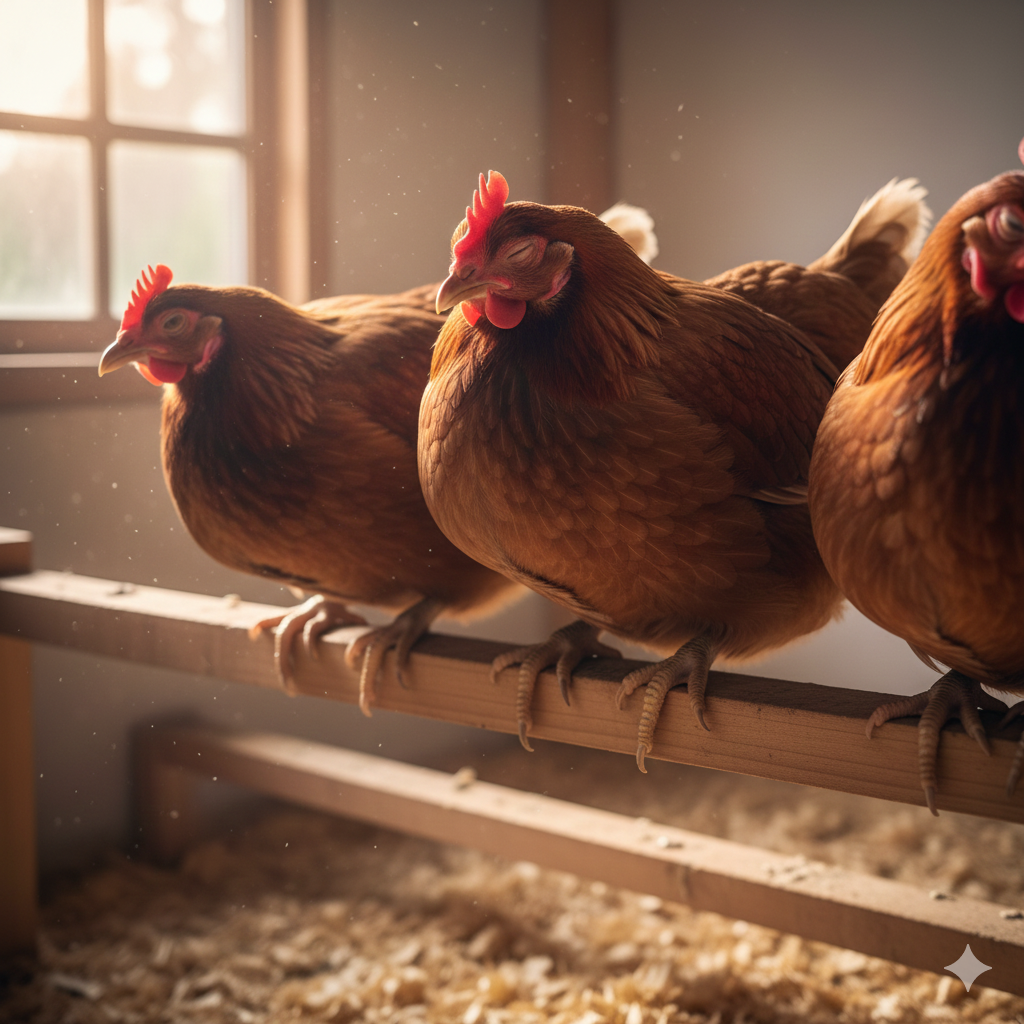 - Régulation Thermique : L’air chaud monte. Se percher leur permet de se blottir les unes contre les autres dans la zone la plus chaude du poulailler, ce qui est crucial en hiver.