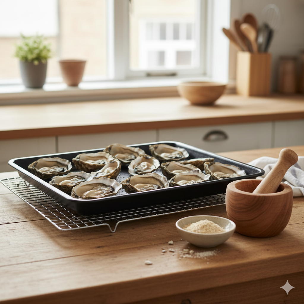 Astuce : Après avoir consommé les huîtres, mettez les coquilles au four lors d’une prochaine cuisson. La chaleur va **fragiliser la structure de la coquille**, la rendant beaucoup plus facile à broyer manuellement. Une fois concassées, elles sont parfaites pour votre cheptel !
